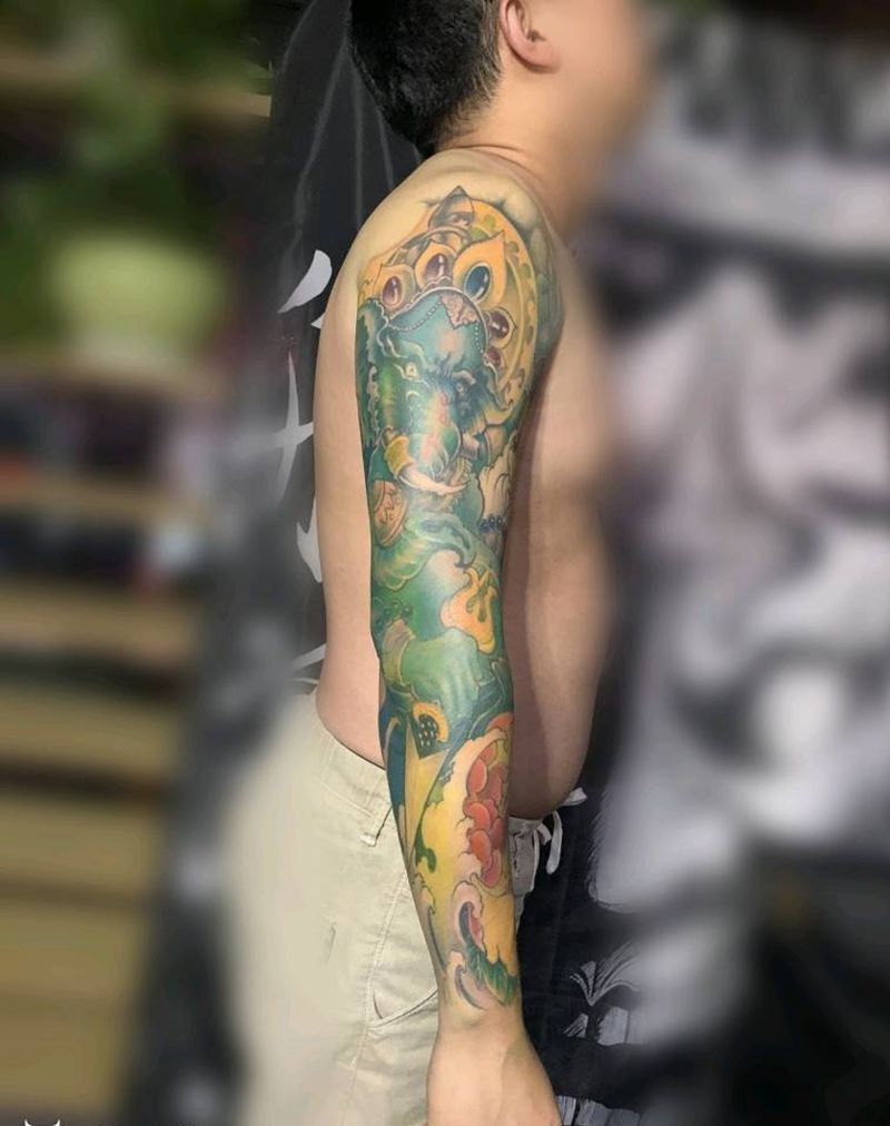 当前位置: 首页 >内蒙古乌兰察布市纹身店-匠一刺青纹身图案>象神纹身图片_手臂新传统纹身图案