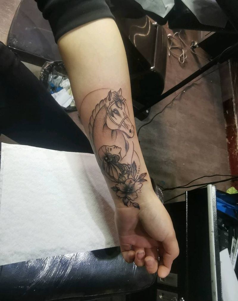 当前位置: 首页 >内蒙古乌兰察布市纹身店-匠一刺青纹身图案>马纹身图片_手臂几何纹身图案