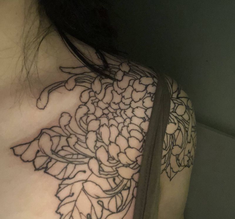 当前位置: 首页 >辽宁省沈阳市纹身店-潜山刺青纹身图案>菊花纹身图片_肩部纹身图案