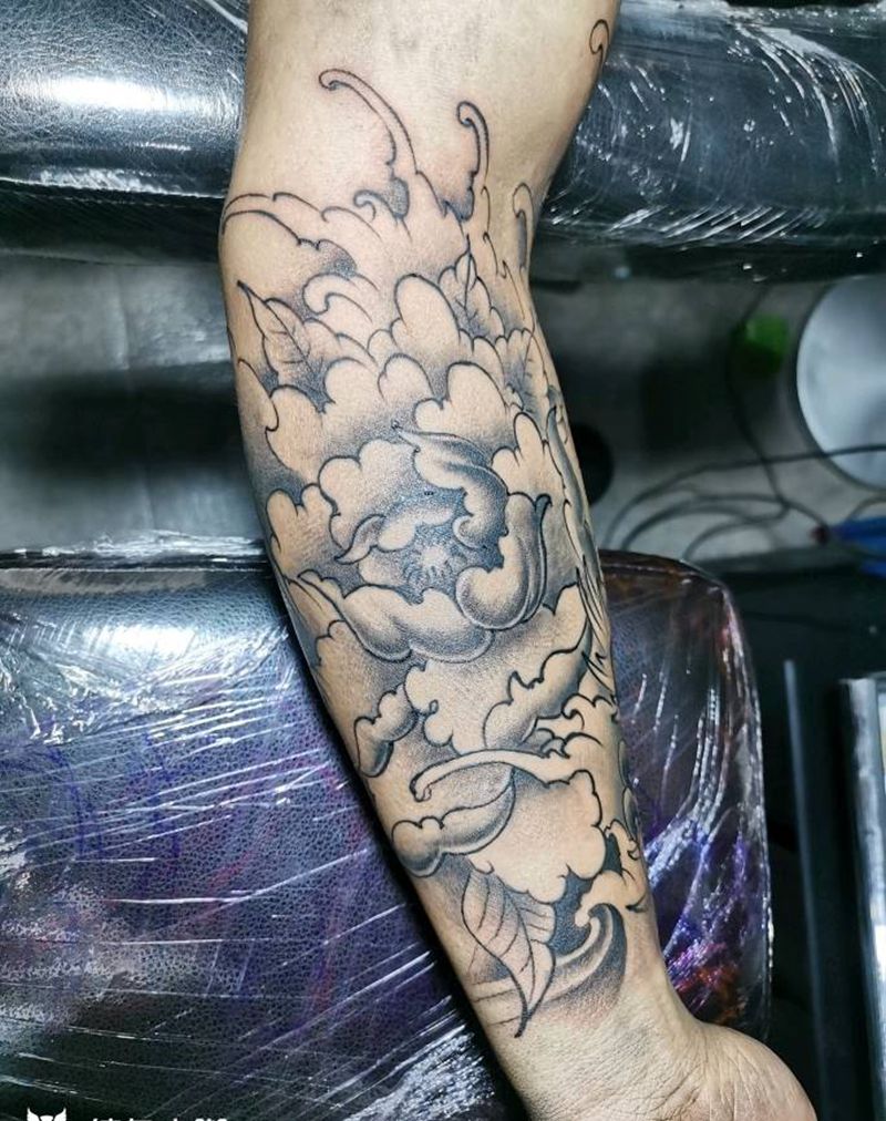 当前位置: 首页 >内蒙古乌兰察布市纹身店-匠一刺青纹身图案>牡丹纹身图片_手臂新传统纹身图案
