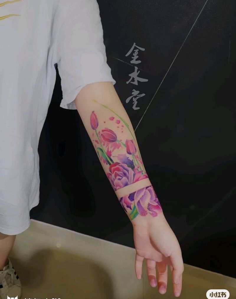 浅花遮盖疤痕纹身图片_手臂腿部水彩纹身图案