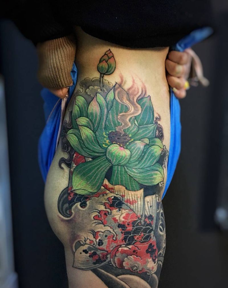 当前位置: 首页 >辽宁省沈阳市纹身店-潜山刺青纹身图案>青莲锦鲤纹身图片