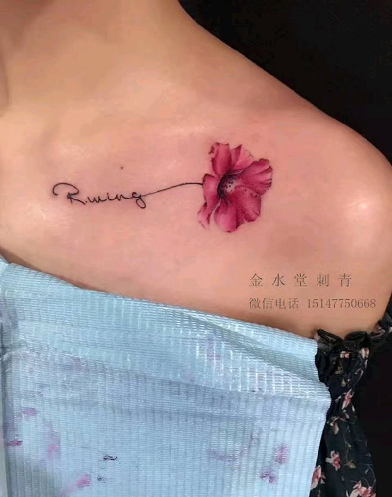 当前位置: 首页 >内蒙古鄂尔多斯市纹身店-金水堂纹身纹身图案>锁骨小花纹身图片_颈部胸部清新纹身图案
