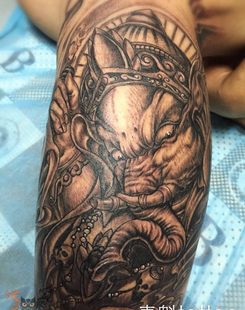 当前位置: 首页 >内蒙古乌兰察布市纹身店-青魁刺青纹身图案>象神纹身图片