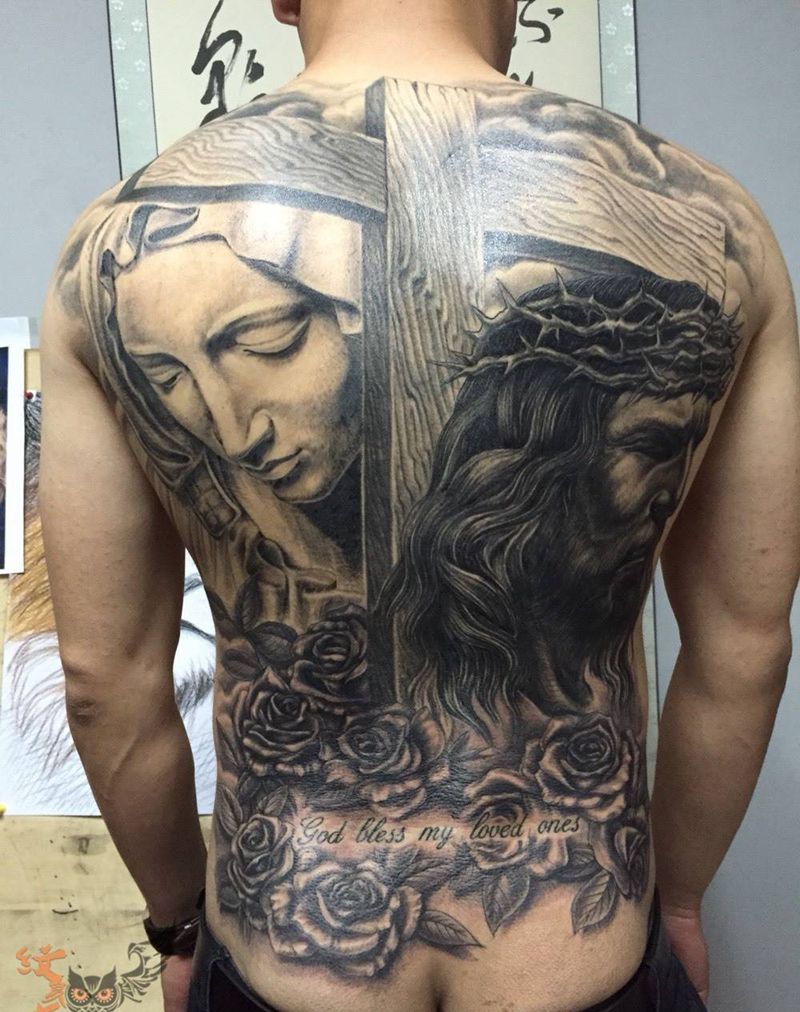 • 纹身吧推荐的披肩图腾半胛纹身图案作品展示