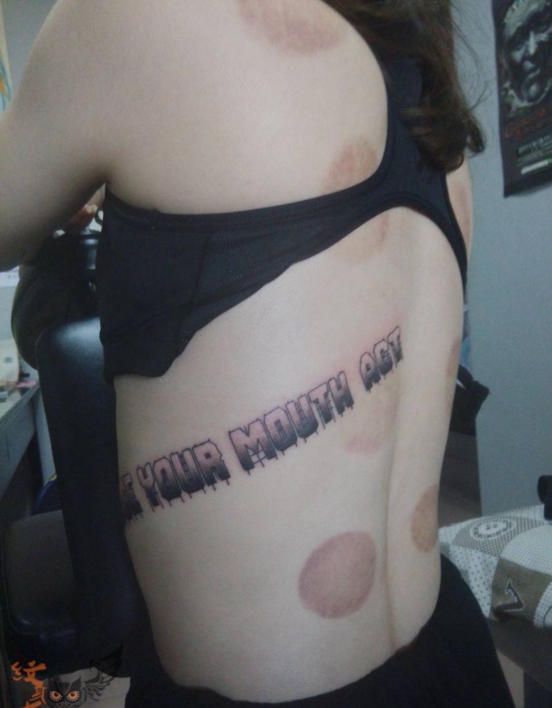 • T关于私处得爱!纹身图片_成品腹部清新字符图腾纹身图案