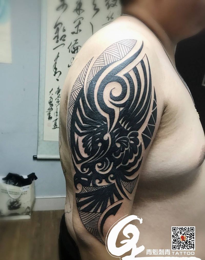 • 纹身吧推荐的披肩图腾半胛纹身图案作品展示