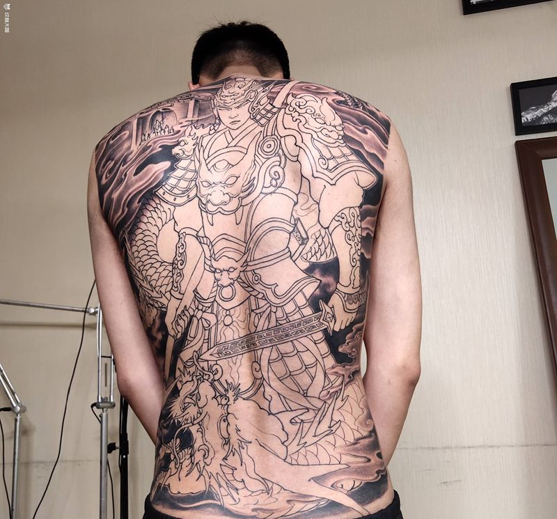 黑灰满背纹身图案