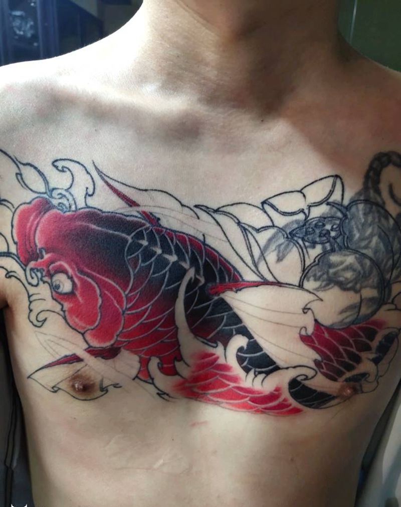 鲤鱼覆盖纹身图片_胸部新传统老传统纹身图案