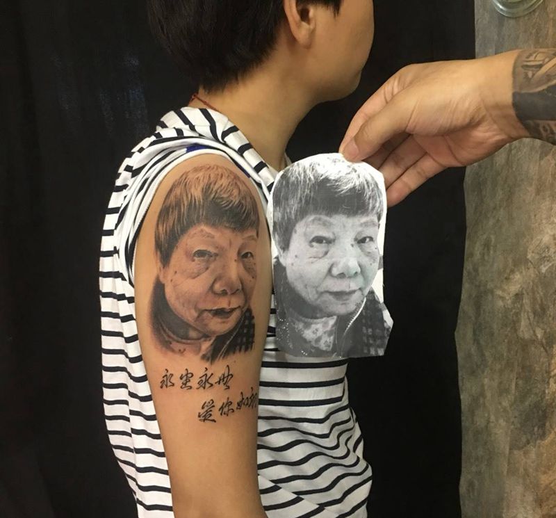 纹身作品纹身图片_手臂新传统肖像纹身图案