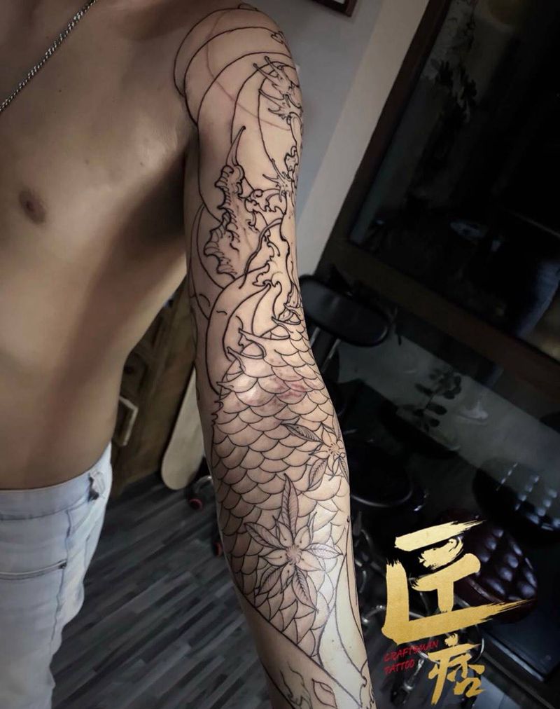 当前位置: 首页 >辽宁省沈阳市纹身店-匠痞刺青纹身图案>花臂龙纹身图片_手臂新传统纹身图案