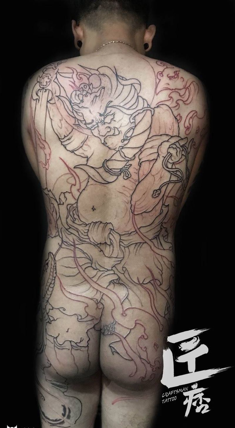 黑灰满背纹身图案