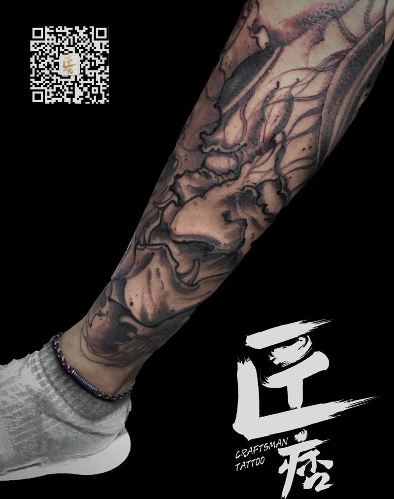 当前位置: 首页 >辽宁省沈阳市纹身店-匠痞刺青纹身图案>般若牡丹包小腿纹身图片