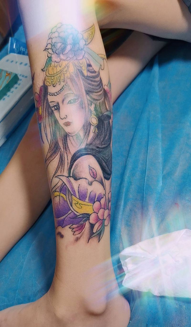 特惠款2纹身图片_腿部新传统艺伎纹身图案