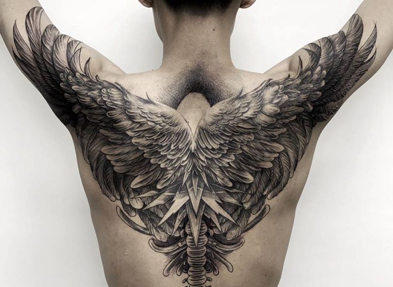 黑灰满背纹身图案