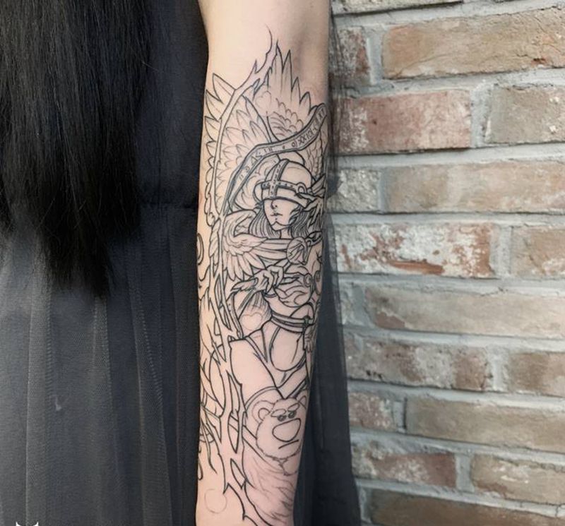 仙女兽线条部分完工纹身图片_New School纹身图案