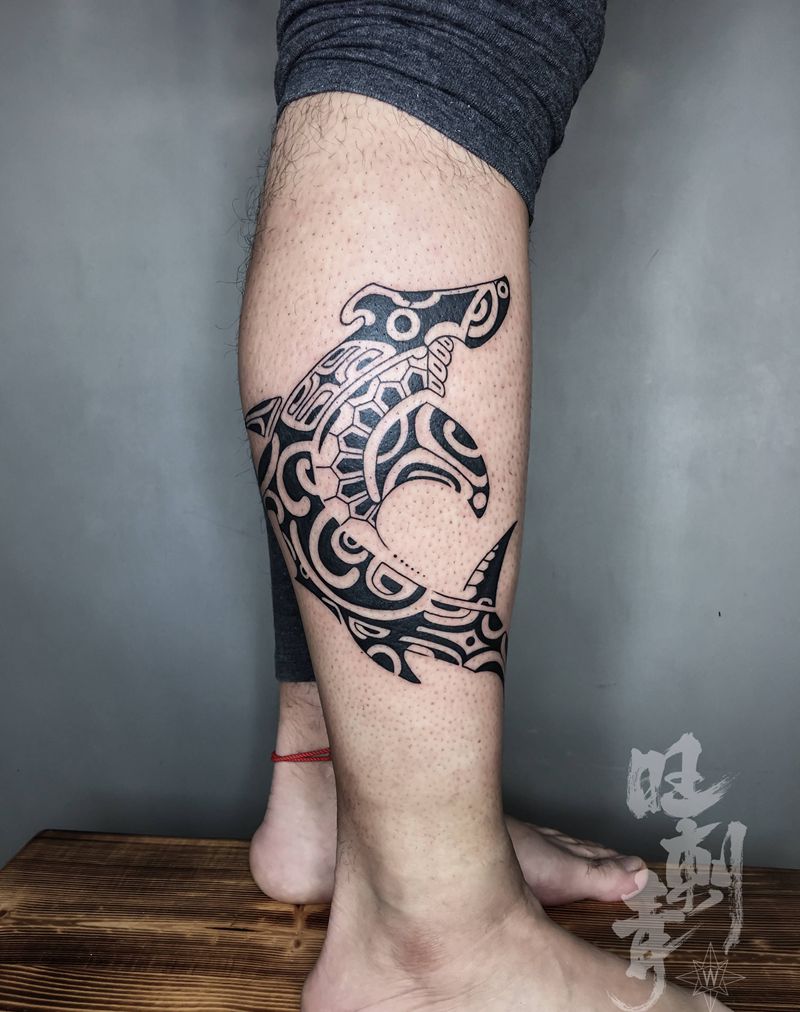 当前位置: 首页 >辽宁省沈阳市纹身店-旺刺青纹身工作室纹身图案>图腾双髻鲨纹身图片_腿部图腾纹身图案