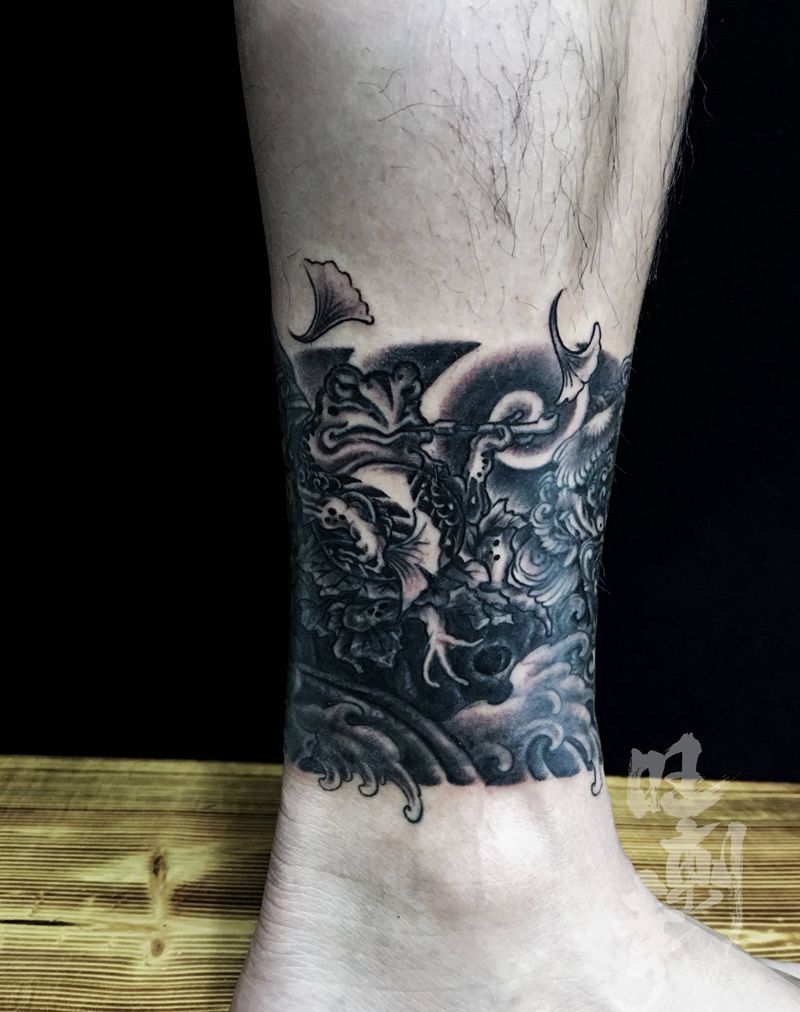 当前位置: 首页 >辽宁省沈阳市纹身店-旺刺青纹身工作室纹身图案>日式脚环遮盖旧纹身纹身图片_腿部脚部老传统新传统龙纹身图案