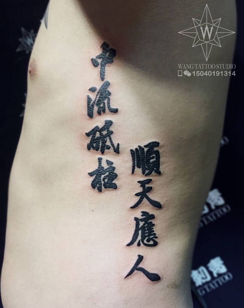 中流砥柱 顺天应人纹身图片_成品腰部传统字符纹身图案
