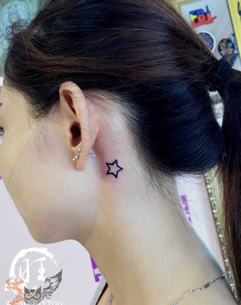 姐妹星纹身图片_颈部清新几何成品纹身图案
