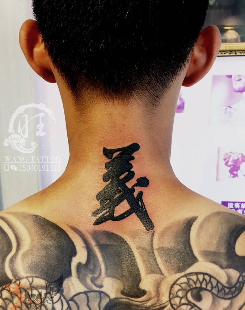 当前位置: 首页 >辽宁省沈阳市纹身店-旺刺青纹身工作室纹身图案>毛笔字《義》纹身图片_颈部传统字符成品纹身图案