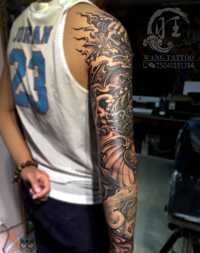 当前位置: 首页 >辽宁省沈阳市纹身店-旺刺青纹身工作室纹身图案>象神花臂纹身图片_成品手臂欧美传统鬼神纹身图案