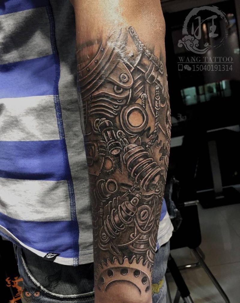 当前位置: 首页 >辽宁省沈阳市纹身店-旺刺青纹身工作室纹身图案>机械臂纹身图片_成品手臂欧美金属机械纹身图案