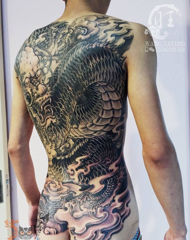 当前位置: 首页 >辽宁省沈阳市纹身店-旺刺青纹身工作室纹身图案>云中龙纹身图片_成品背部传统动物纹身图案