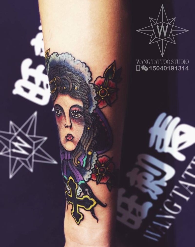 当前位置: 首页 >辽宁省沈阳市纹身店-旺刺青纹身工作室纹身图案>old school小女孩纹身图片_成品手臂欧美肖像纹身图案