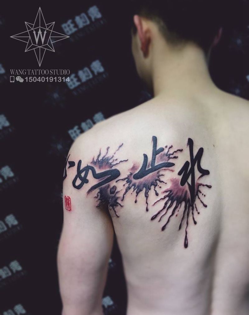 当前位置: 首页 >辽宁省沈阳市纹身店-旺刺青纹身工作室纹身图案>书法作品纹身图片_成品肩部背部传统字符纹身图案