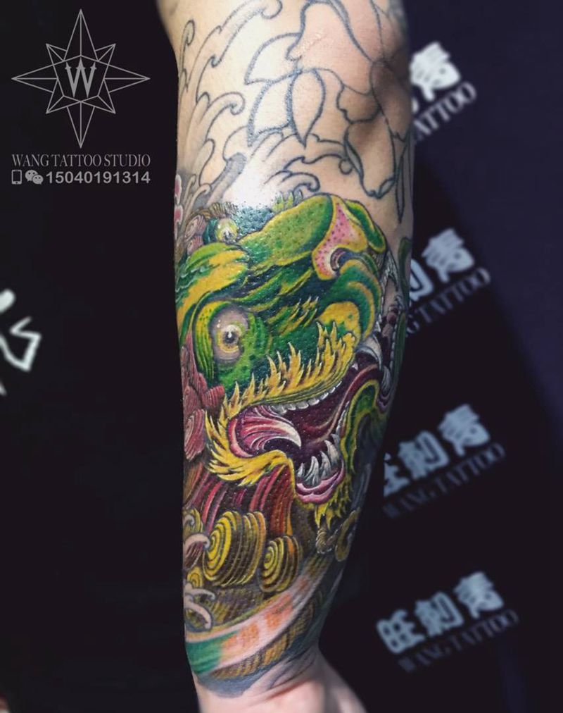 当前位置: 首页 >辽宁省沈阳市纹身店-旺刺青纹身工作室纹身图案>唐狮子纹身图片_成品手臂传统鬼神动物纹身图案