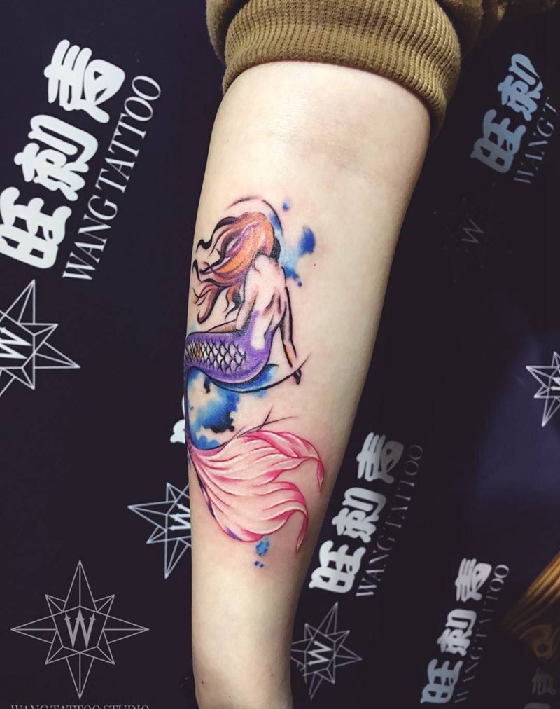 当前位置: 首页 >辽宁省沈阳市纹身店-旺刺青纹身工作室纹身图案>美人鱼纹身图片_成品手臂欧美字符人物纹身图案