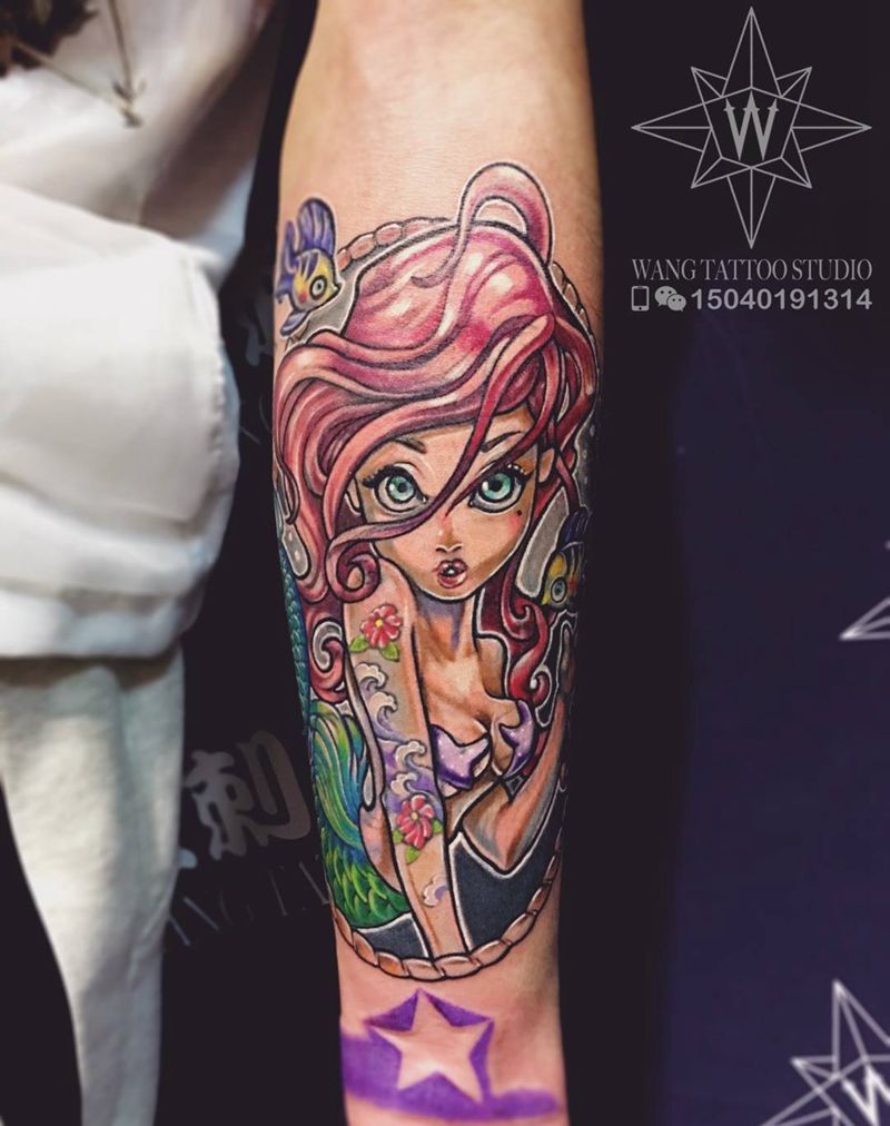当前位置: 首页 >辽宁省沈阳市纹身店-旺刺青纹身工作室纹身图案>美人鱼纹身图片_成品手臂欧美人物纹身图案