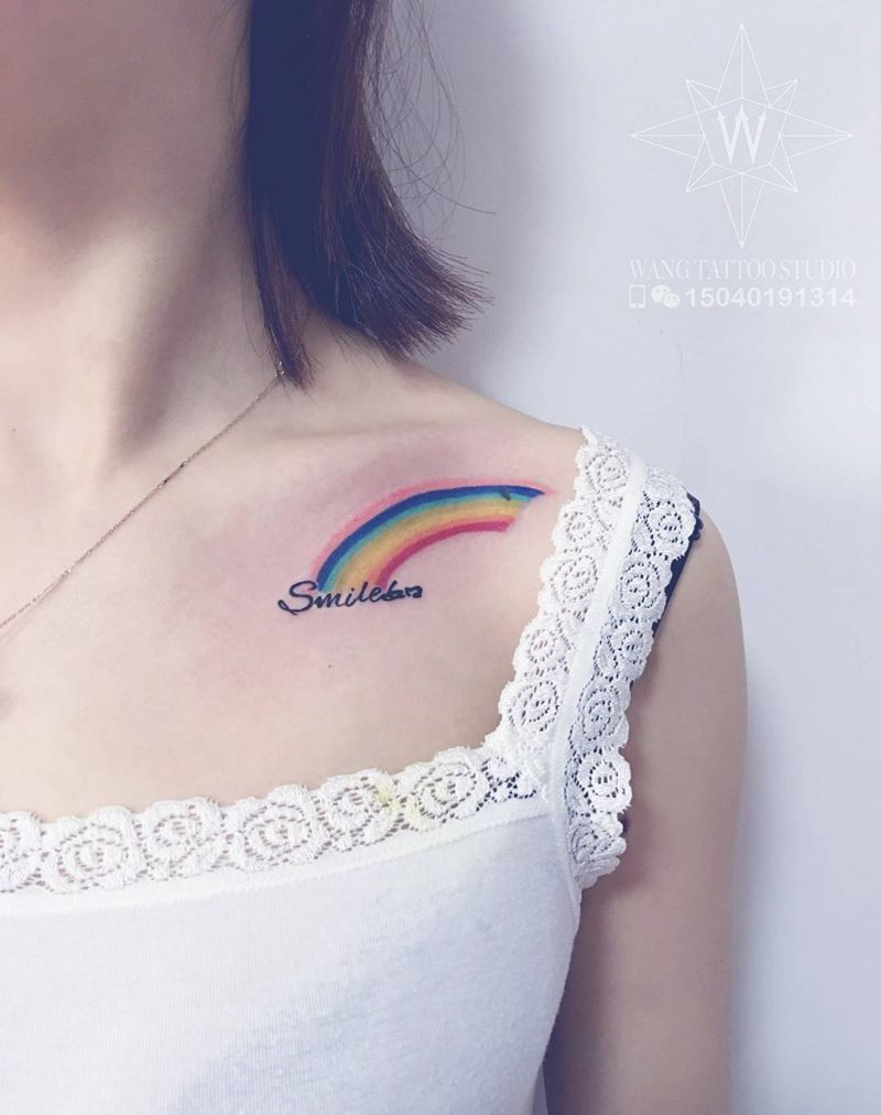 当前位置: 首页 >辽宁省沈阳市纹身店-旺刺青纹身工作室纹身图案>彩虹纹身图片_成品胸部欧美清新字符纹身图案