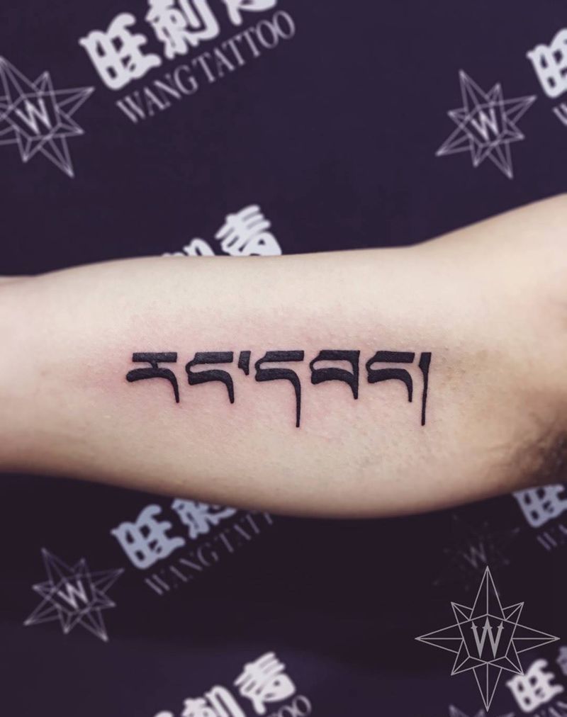 藏文自由纹身图片_成品手臂传统字符纹身图案