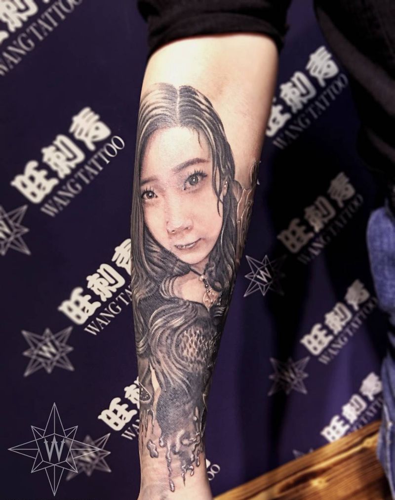 当前位置: 首页 >辽宁省沈阳市纹身店-旺刺青纹身工作室纹身图案>肖像玫瑰花纹身图片_成品手臂欧美清新肖像植物动物纹身图案
