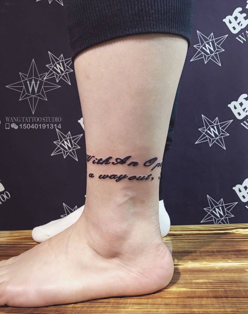 当前位置: 首页 >辽宁省沈阳市纹身店-旺刺青纹身工作室纹身图案>放爱一条生路 让爱一个出路纹身图片_成品腿部欧美清新字符纹身图案