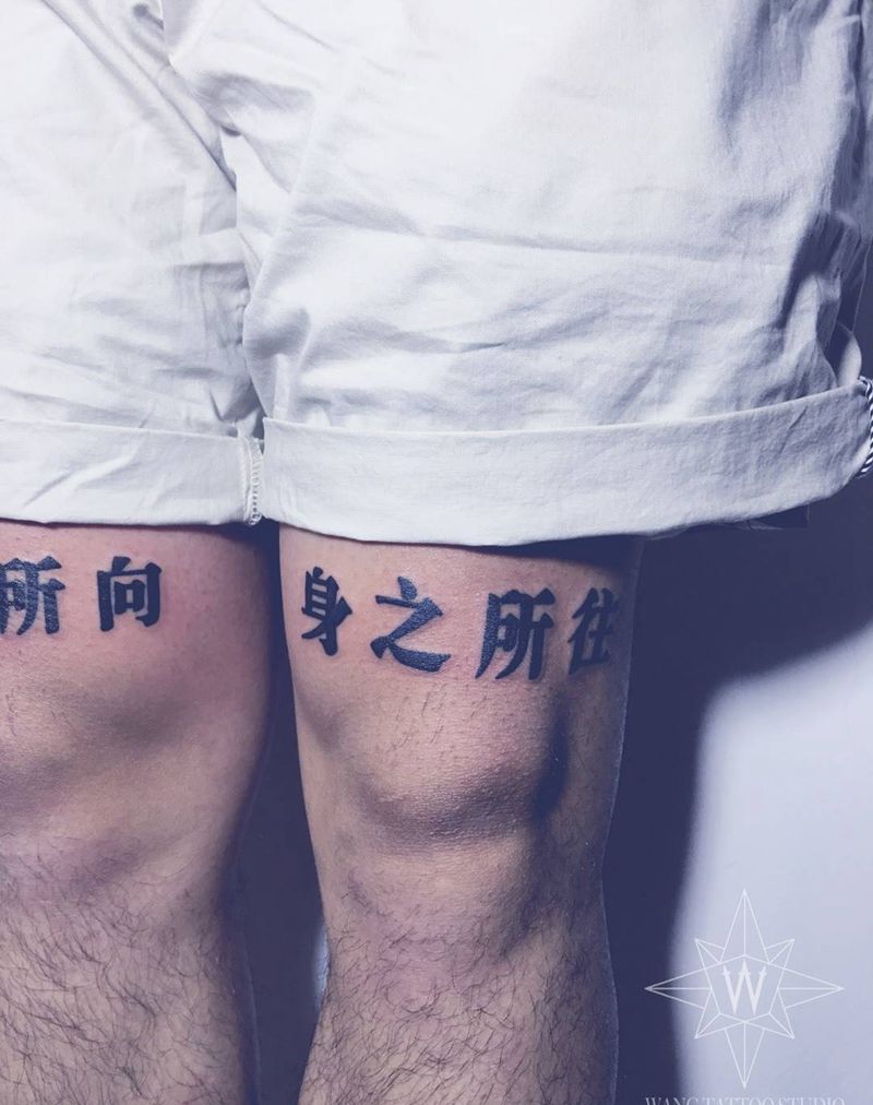 当前位置: 首页 >辽宁省沈阳市纹身店-旺刺青纹身工作室纹身图案>心之所向 身之所往纹身图片_成品腿部传统字符纹身图案