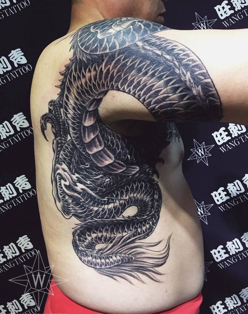 修改遮盖披肩龙纹身图片_成品胸部手臂腹部传统鬼神纹身图案