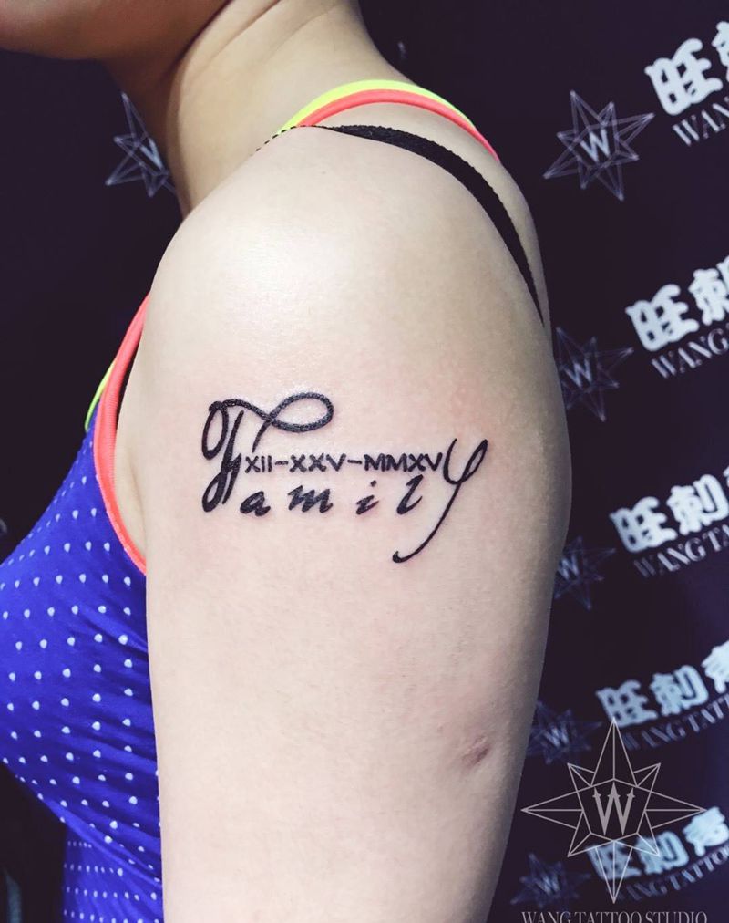 • T家庭图,一家四口生日纪念!纹身图片_手臂纹身图案