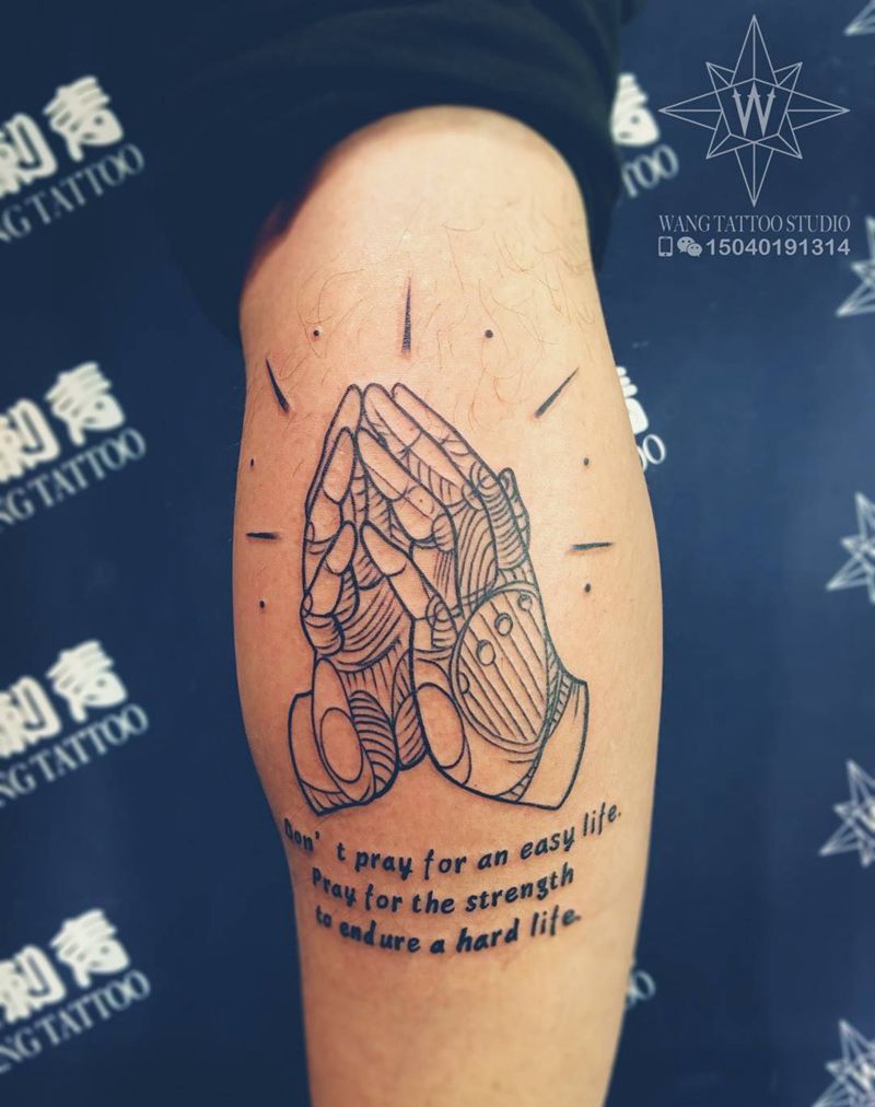 当前位置: 首页 >辽宁省沈阳市纹身店-旺刺青纹身工作室纹身图案>祈祷的手纹身图片_成品腿部欧美字符纹身图案
