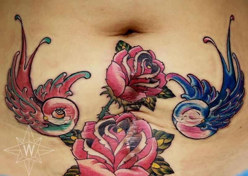 当前位置: 首页 >辽宁省沈阳市纹身店-旺刺青纹身工作室纹身图案>剖腹产疤痕遮盖纹身图片_成品腹部欧美动物植物纹身图案