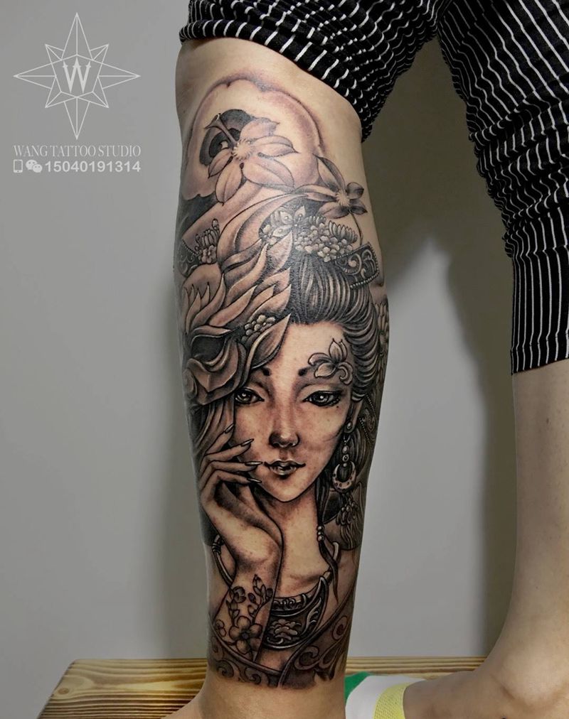 当前位置: 首页 >辽宁省沈阳市纹身店-旺刺青纹身工作室纹身图案>艺妓纹身图片_成品传统肖像人物脚部纹身图案