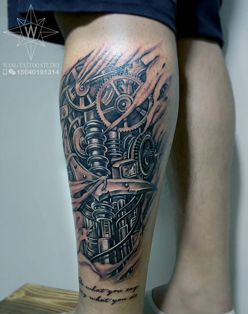 当前位置: 首页 >辽宁省沈阳市纹身店-旺刺青纹身工作室纹身图案>机械小腿纹身图片_成品腿部欧美写实纹身图案