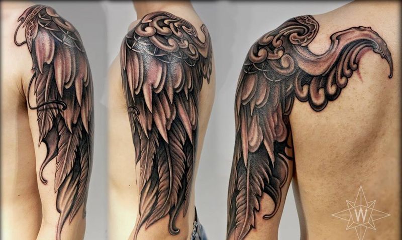 当前位置: 首页 >辽宁省沈阳市纹身店-旺刺青纹身工作室纹身图案>翅膀修改纹身图片_成品手臂欧美写实纹身图案