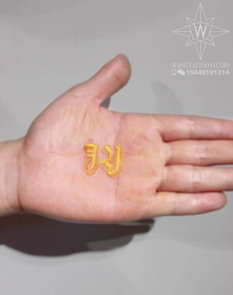 当前位置: 首页 >辽宁省沈阳市纹身店-旺刺青纹身工作室纹身图案>手心字母纹身图片_成品手部欧美字符纹身图案
