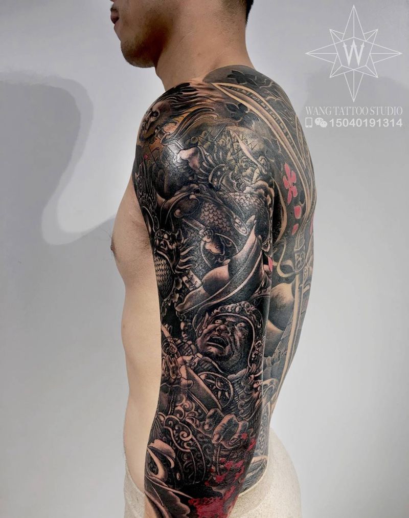 当前位置: 首页 >辽宁省沈阳市纹身店-旺刺青纹身工作室纹身图案>赵云七分袖纹身图片_成品手臂传统人物纹身图案