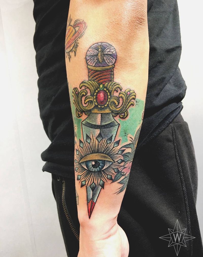 匕首纹身图片_成品手臂欧美武器纹身图案