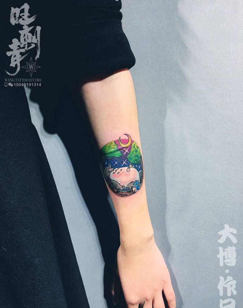 当前位置: 首页 >辽宁省沈阳市纹身店-旺刺青纹身工作室纹身图案>卡通龙猫纹身图片_成品手臂欧美清新植物动物纹身图案