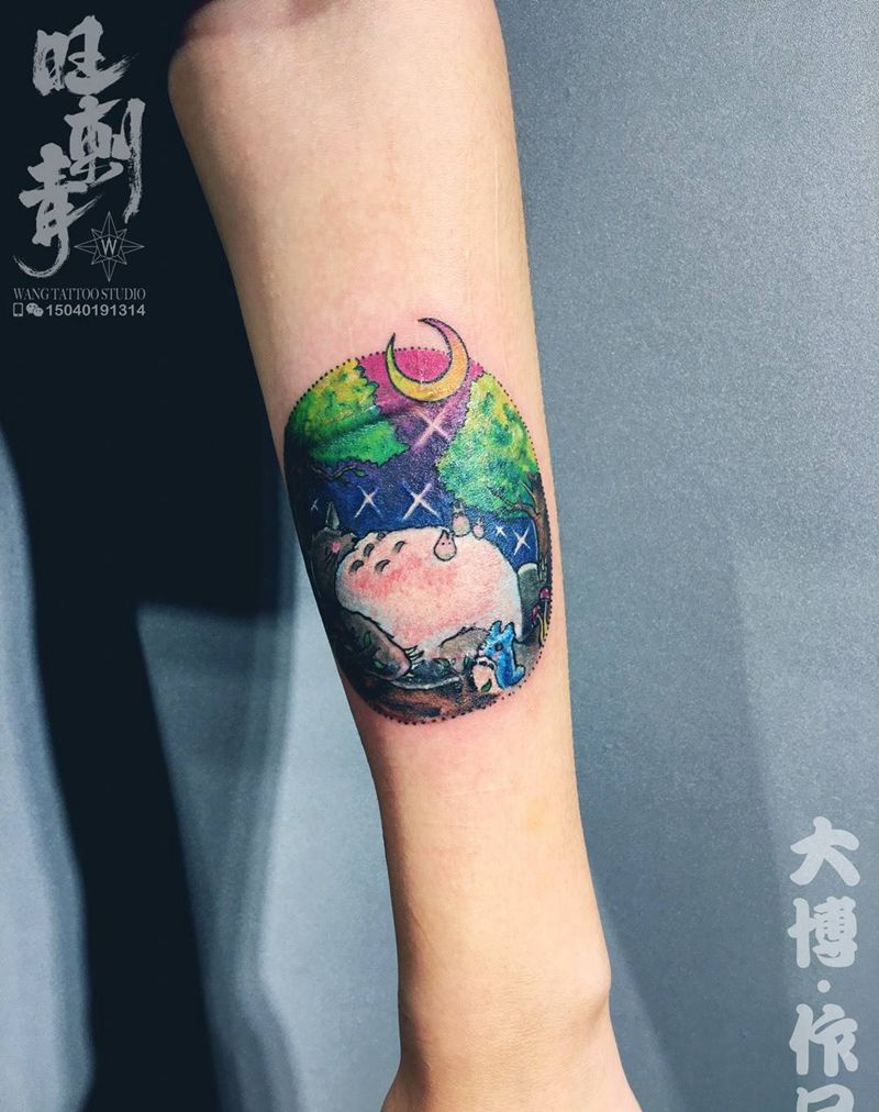 当前位置: 首页 >辽宁省沈阳市纹身店-旺刺青纹身工作室纹身图案>卡通龙猫纹身图片_成品手臂欧美清新植物动物纹身图案